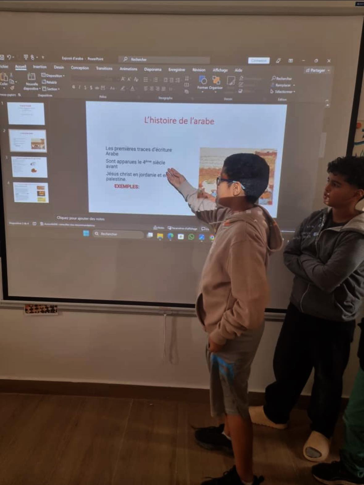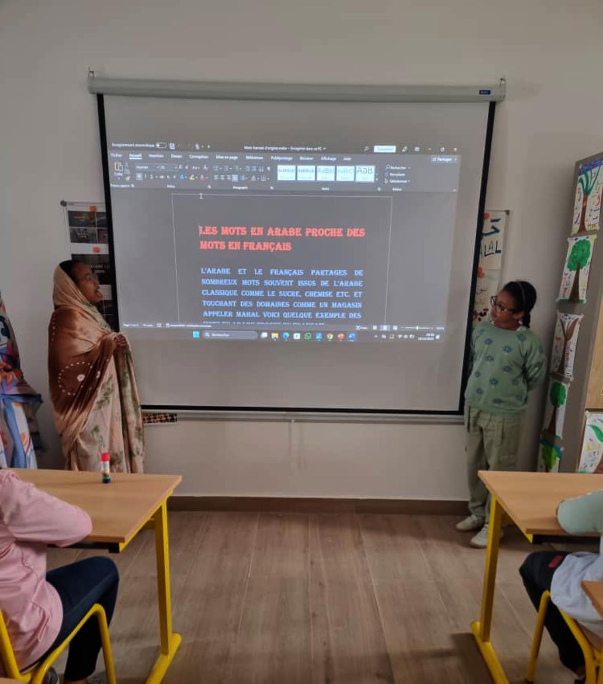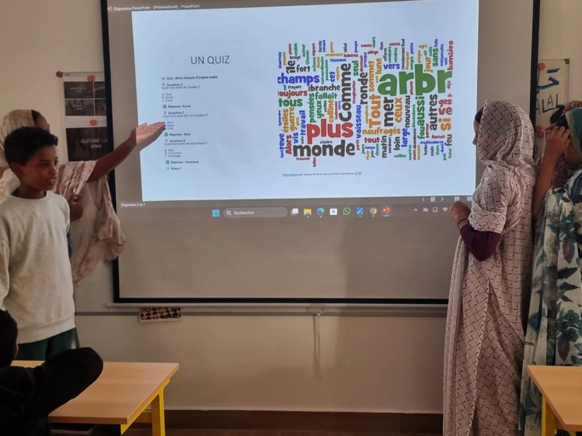 À l’occasion de La Journée mondiale de la langue arabe, les élèves de 6ᵉ ont présenté aux CP et CE1 leur projet passionnant sur les mots français d’origine arabe, à travers un PowerPoint.
