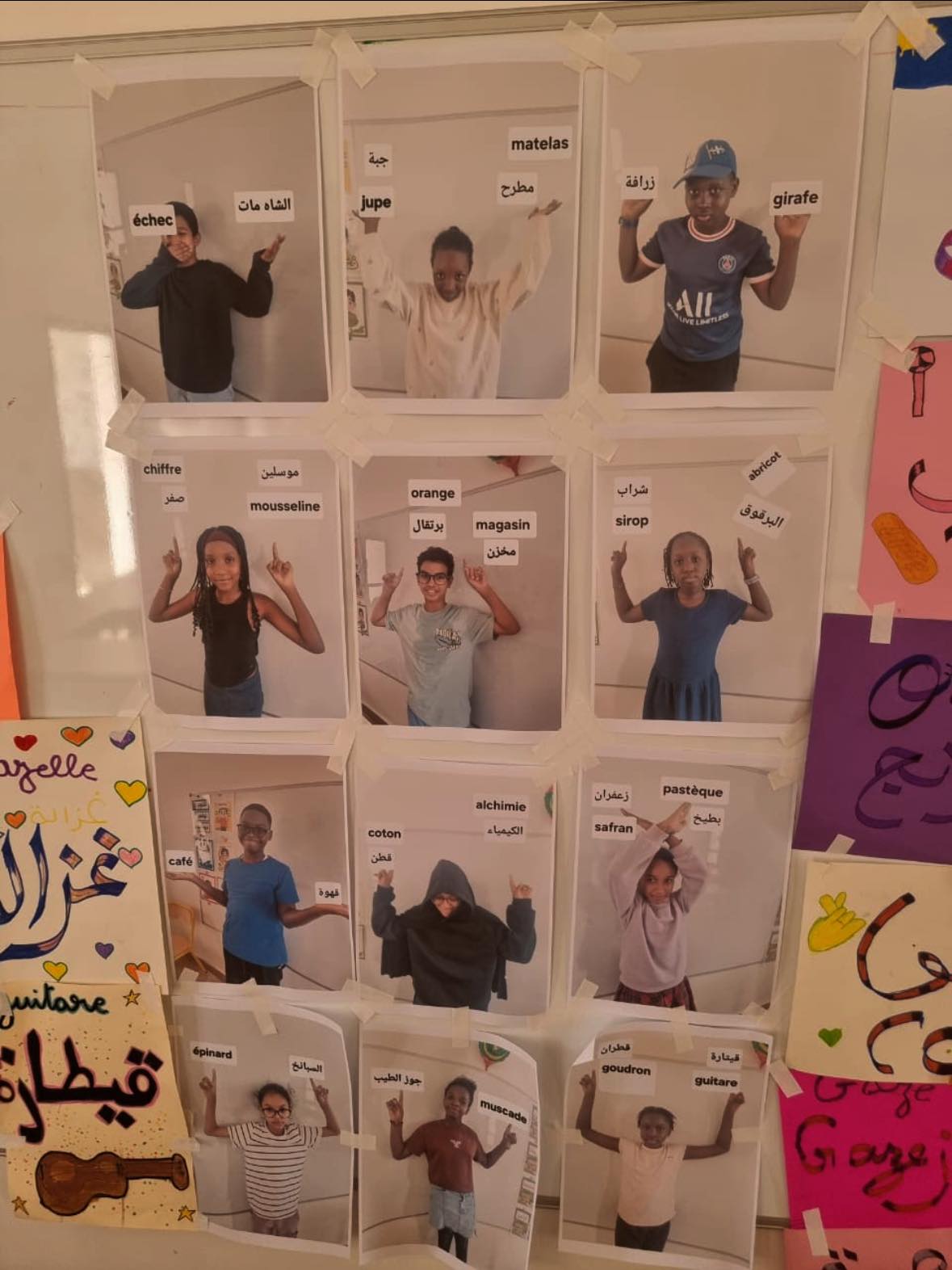 Pendant ce temps, les CM1 et CM2 ont créé une exposition pour partager ces mêmes mots et leur histoire avec toute l’école.